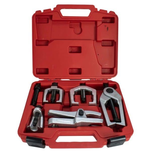 • Kit completo com 6 peças para extração de terminais de direção, pivôs, barras estabilizadoras e componentes da suspensão dianteira;